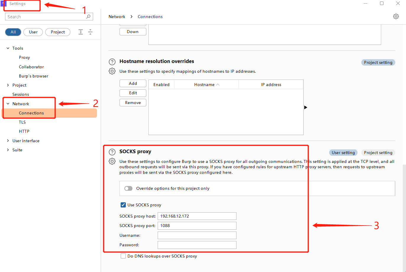 1 2 3 4 5 6 7 8 9 #代理流程 Browser<--->BurpSuite<--->Socks Proxy Server<--->WebSite #步骤设置1. 开启BurpSuite进入ProjectOptions选中SOCKS Proxy2. 勾选Override user options并且填写Use SOCKS proxy下的host与port为MSF开启的代理地址与端口3. 回到火狐浏览器设置BP代理为HTTP类型的127.0 .0 .1 :8080 与MSF的SOCKS5类型代理4. 先挂MSF的代理访问站点到用户登录界面要抓取的数据包,在挂BP的代理且在BP的Proxy模块开启监听5. 此时已经设置了浏览器的数据走BP,而BP抓到的数据走SOCKS5代理,抓取登陆请求的HTTP数据包... 注:此种方式也可隐藏自身IP地址...