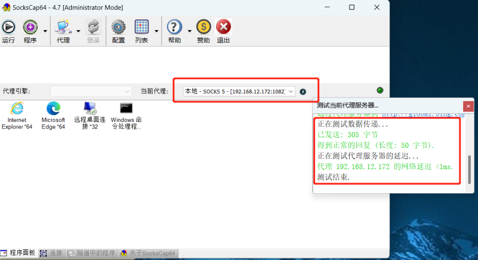 直接本地通过SocksCap64代理进行远程连接,成功连接到远程桌面