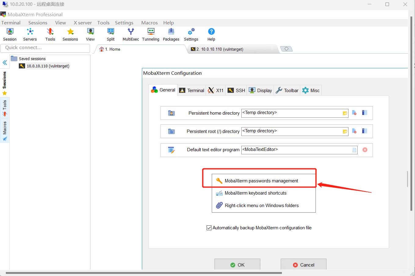 方法一:直接通过MobaXterm查看密码,点击上方的Settings按照流程进行点击,需要输入登录用户的密码即:Admin#123